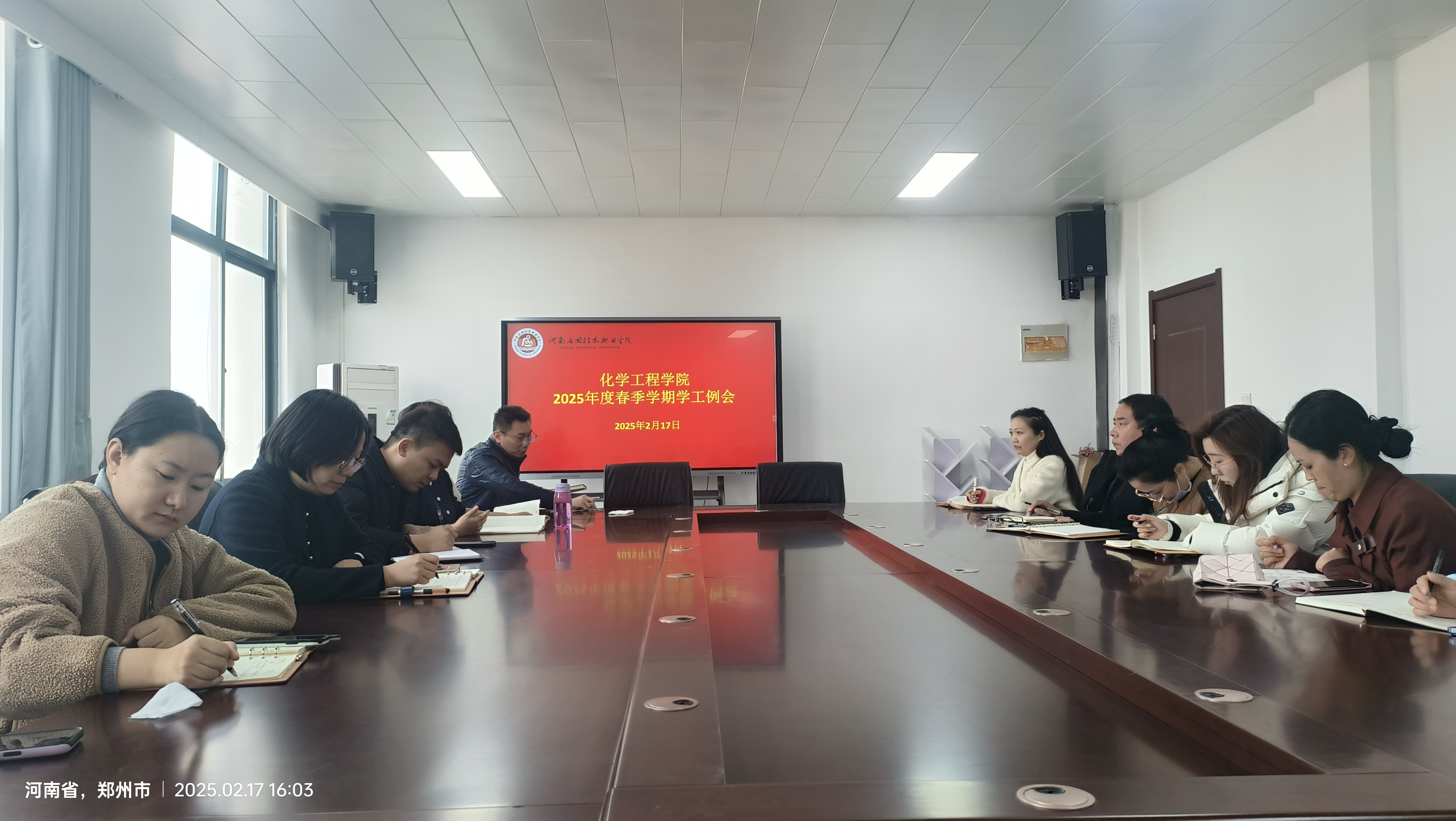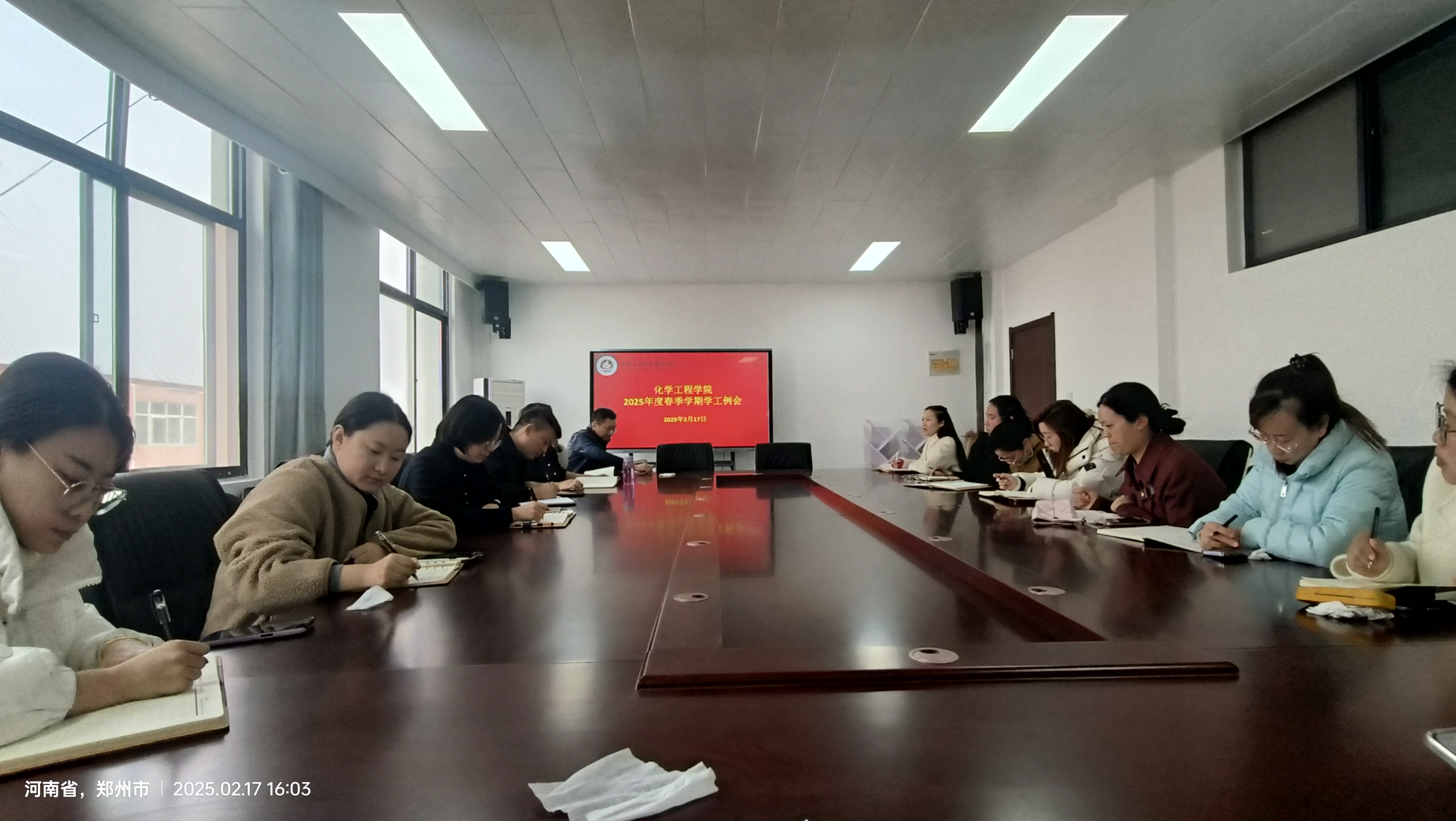 为扎实推进新学期安全及日常学生管理工作,提高辅导员安全管理意识及管理能力,化学工程学院于2025年2月17日在A512召开新学期安全及学生管理工作专题会议。学院党总支书记陈永惠、党总支副书记常惟诚、以及全体专兼职辅导员参加会议,会议由常惟诚主持。