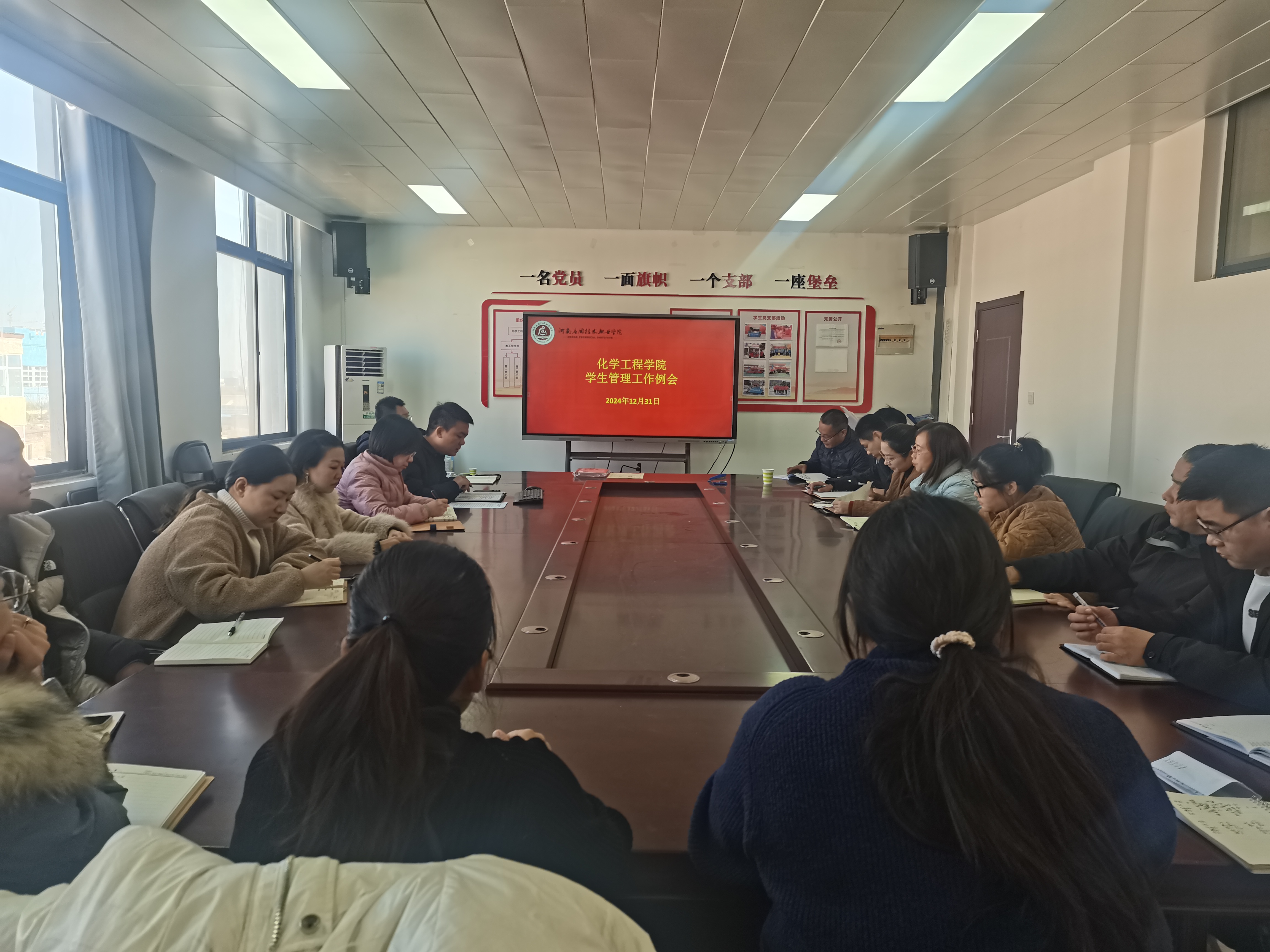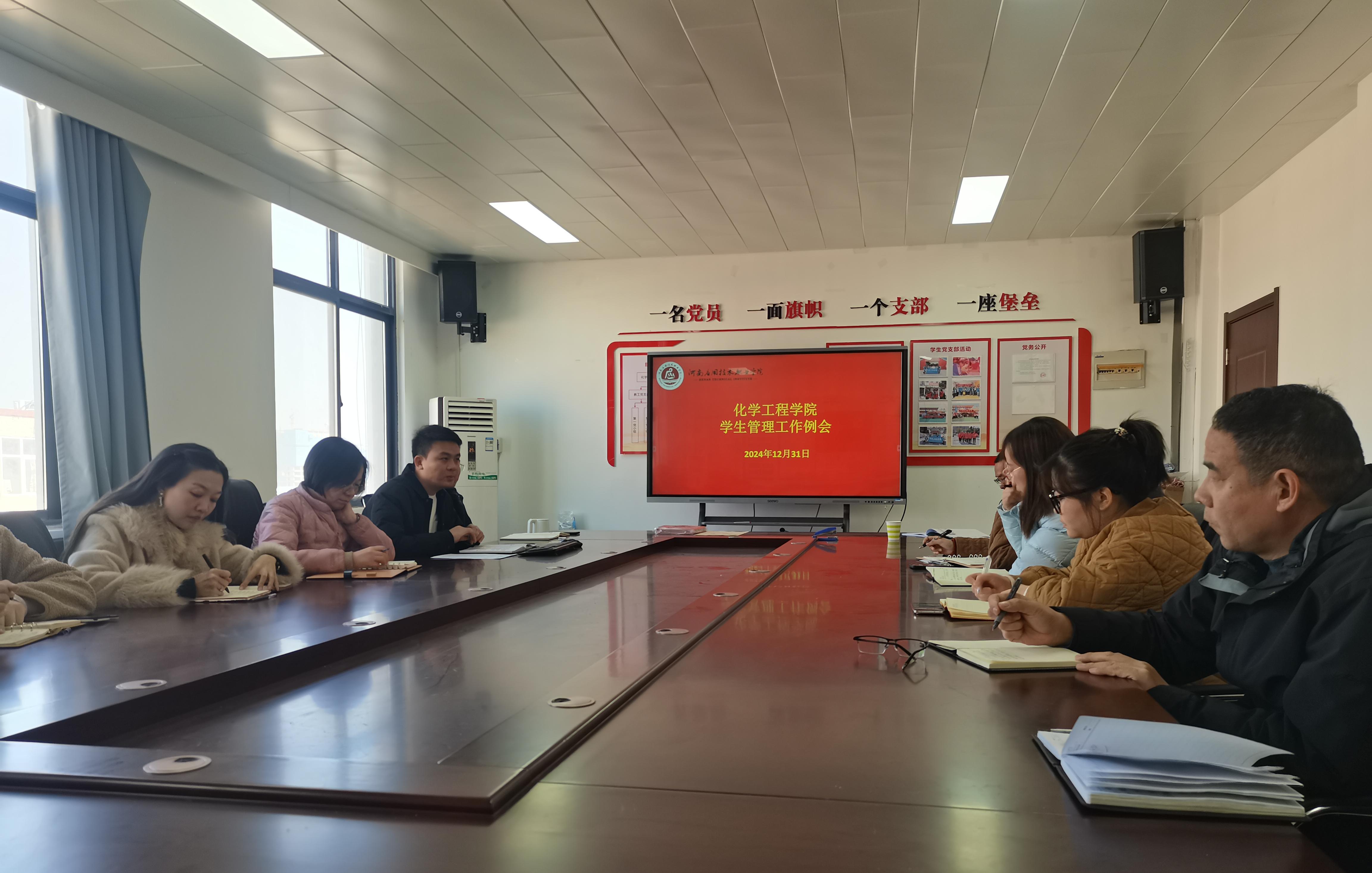 为了进一步夯实辅导员队伍建设,全面总结学院学生管理工作,化学工程学院于2024年12月31日中午在A512召开学生管理工作例会。学院党总支书记陈永惠、党总支副书记常惟诚以及全体专兼职辅导员参加会议,会议由常惟诚主持。