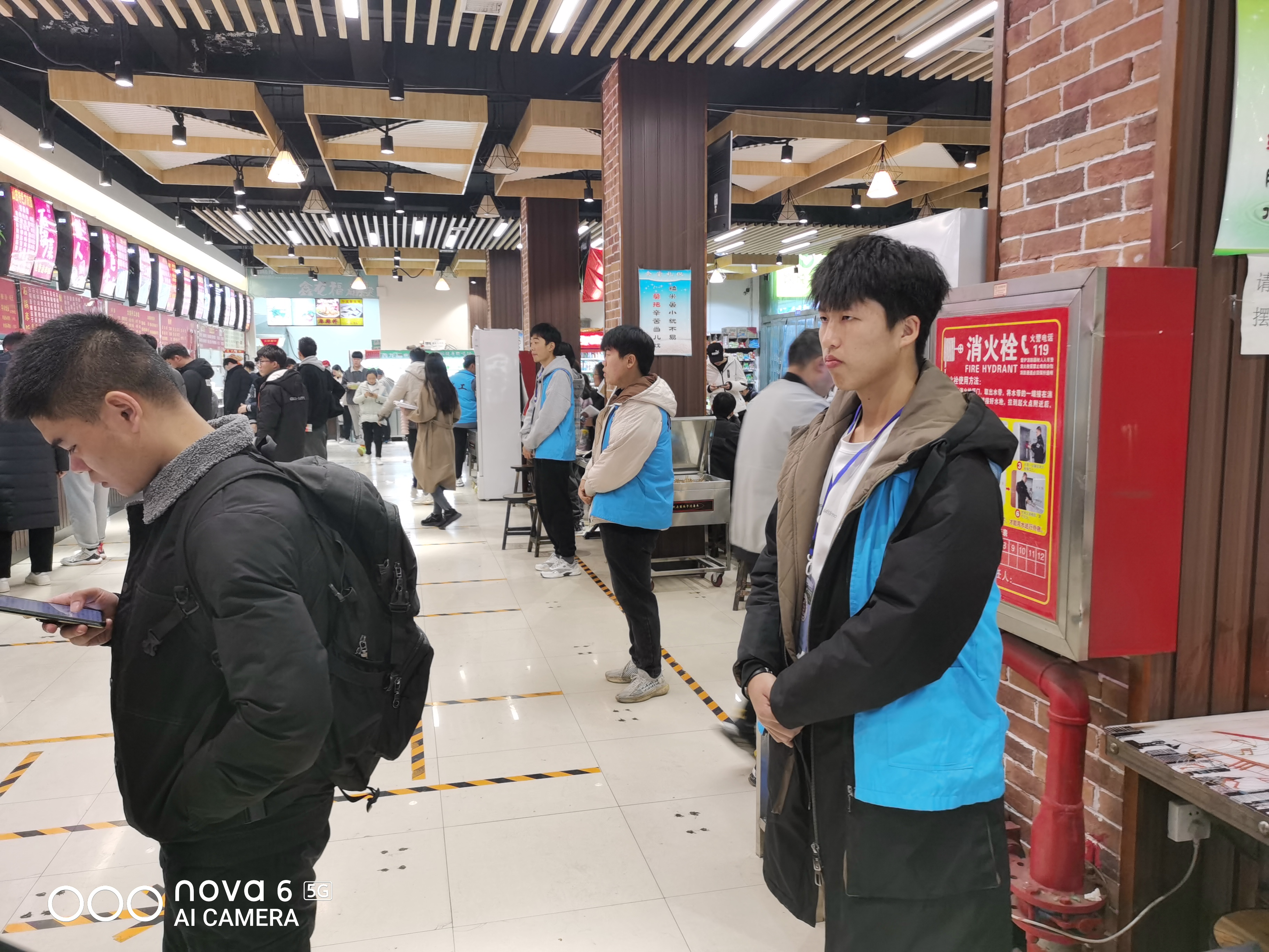 活动中,志愿者们统一穿着马甲、佩戴工作证,精神饱满地为师生提供志愿服务。积极引导大家按食堂进出口标识进出;在就餐高峰期,提醒师生按照地面“一米线”标识有序排队取餐;用餐结束后,提醒大家将餐具送至回收处等,这些身影成为应院食堂一道亮丽的风景线。