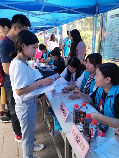 在迎新现场,志愿者们分工明确,从入学资格审查到新生信息登记,从新生材料收取到新生物品发放,一站式服务,井然有序。在校园里,更是处处可见迎新志愿者穿梭在校园里,热情细心地引导新生完成报到流程,帮助新生搬运行李,并积极介绍校园环境和大学生活经验。同时学院设置了家长休息处和饮水处,为新生及家长提供了极大的便利。除此之外,学院还有一项特色服务--皮肤检测,免费为大家进行皮肤含水量、皮肤红血丝、斑的检测,这项服务得到了大家的一致赞赏。