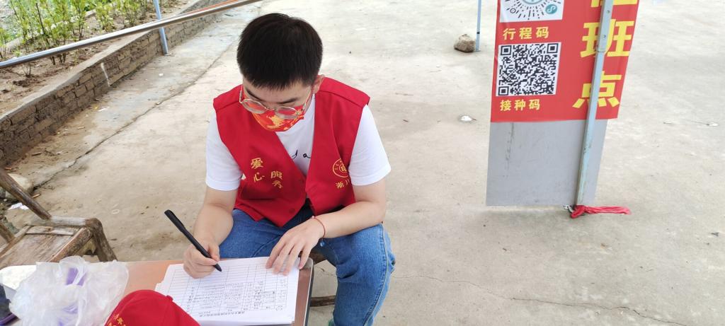 在志愿服务期间,他每天前往服务点帮助前来检测的居民进行登记,扫码,维持现场秩序等工作,并提醒居民带好口罩保持距离。同时积极参与社区卡点工作中,做好往来人员和车辆的信息登记和体温测量工作。他坚信泱泱华夏,没有过不去的坎,全国上下一心,必将打赢这场疫情攻坚战。
