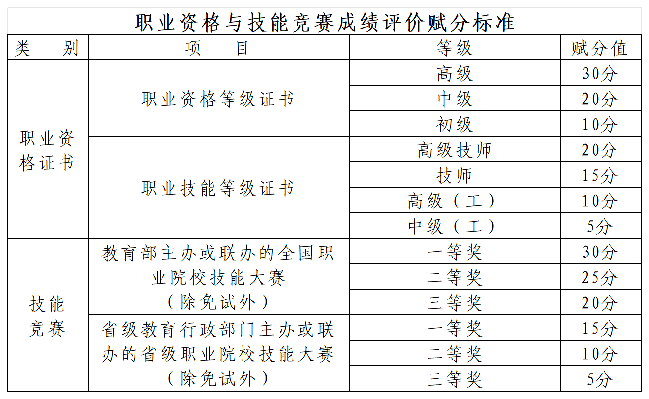 考生职业资格证书、技能竞赛成绩评价赋分办法