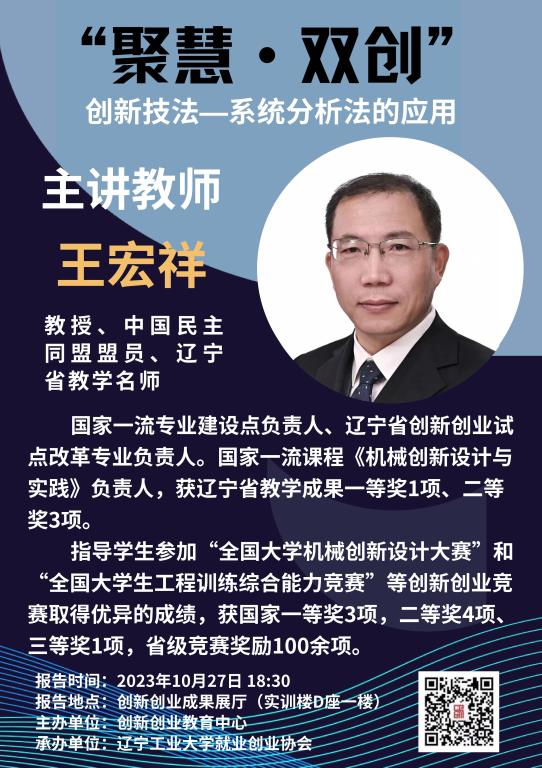 王宏祥,机械设计制造及其自动化专业教授,中国民主同盟盟员,辽宁省教学名师、优秀教师。国家一流专业建设点负责人、辽宁省创新创业试点改革专业负责人。国家一流课程《机械创新设计与实践》负责人,获辽宁省教学成果一等奖1项、二等奖3项。