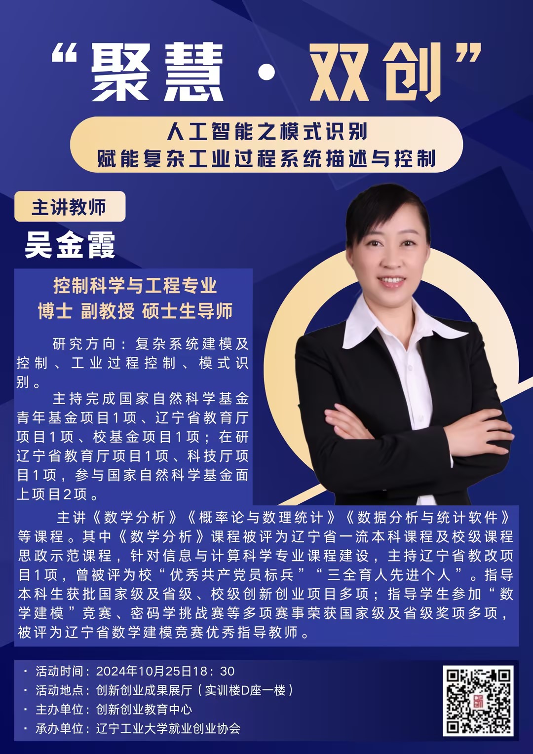 报告题目:人工智能之模式识别赋能复杂工业过程系统描述与控制