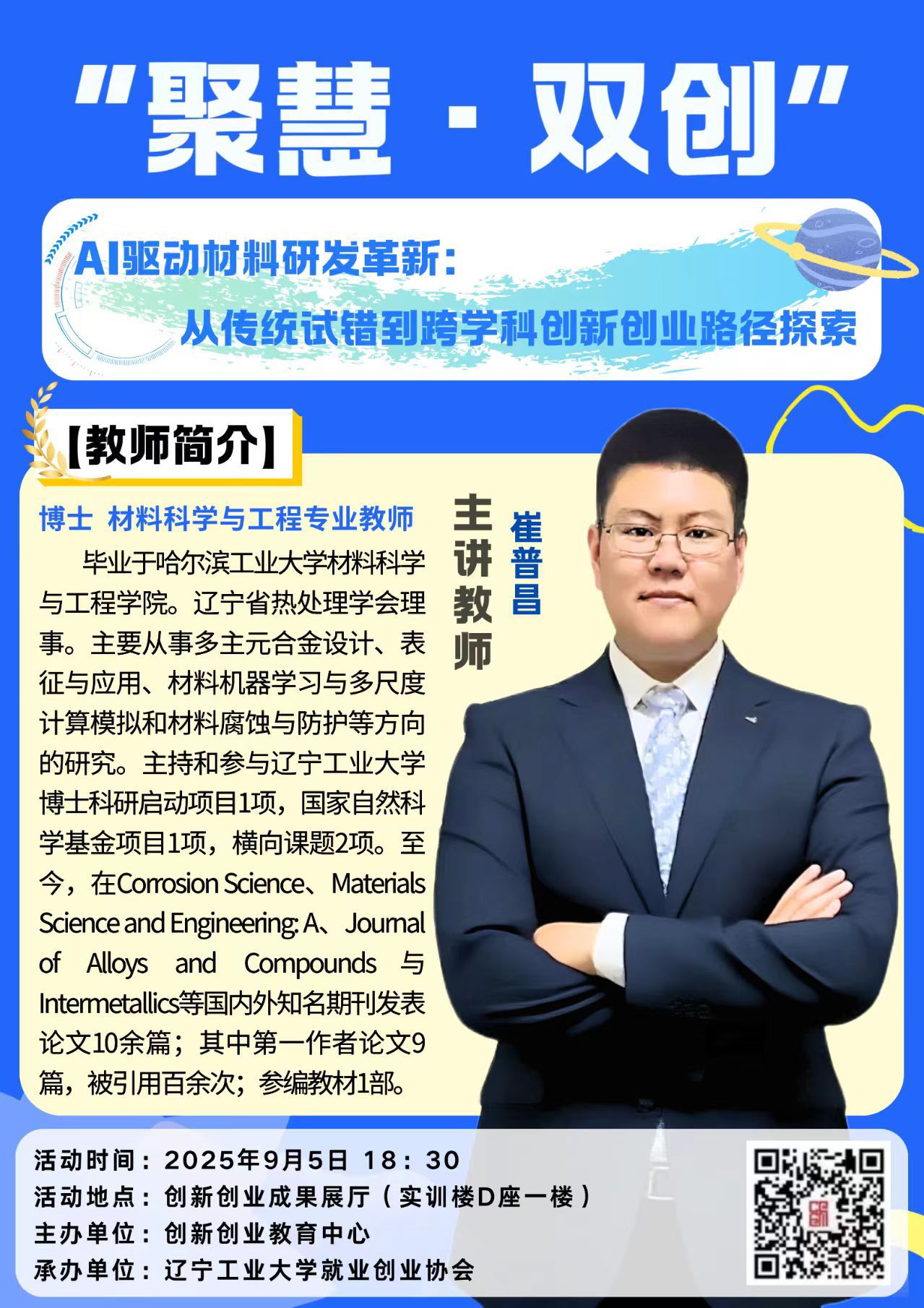 报告题目:“聚慧·双创”—— AI驱动材料研发革新:从传统试错到跨学科创新创业路径探索