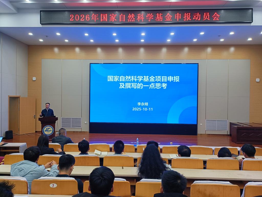 为全面部署2026年度国家自然科学基金申报工作,系统总结现阶段科研工作成效,10月11日,学校召开2026年度国家自然科学基金申报动员会。党委常委、副校长李永明出席会议并讲话。学校相关部门负责人,各学院主管科研工作副院长及教师代表参加会议。会议由科学技术处处长张震斌主持。